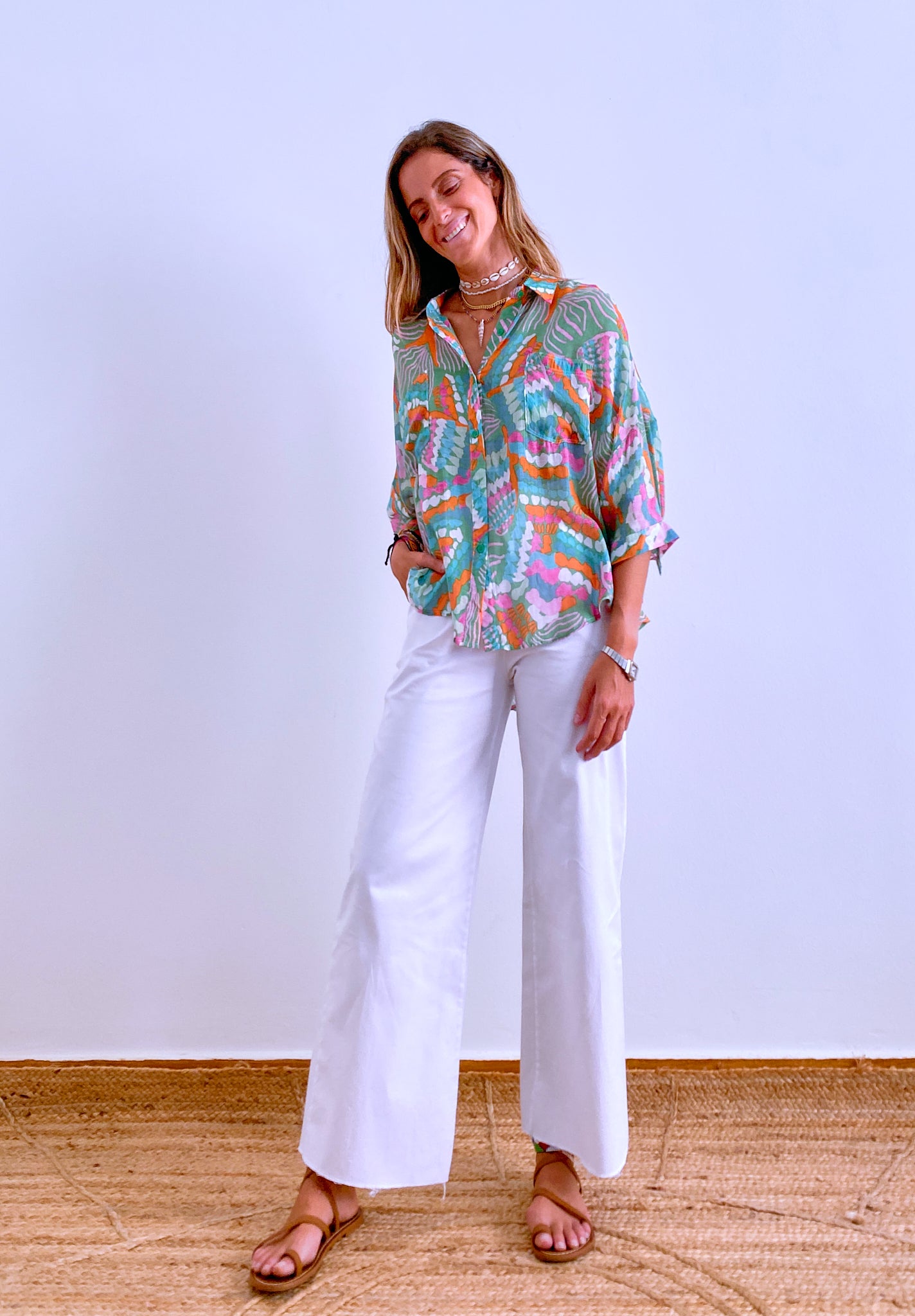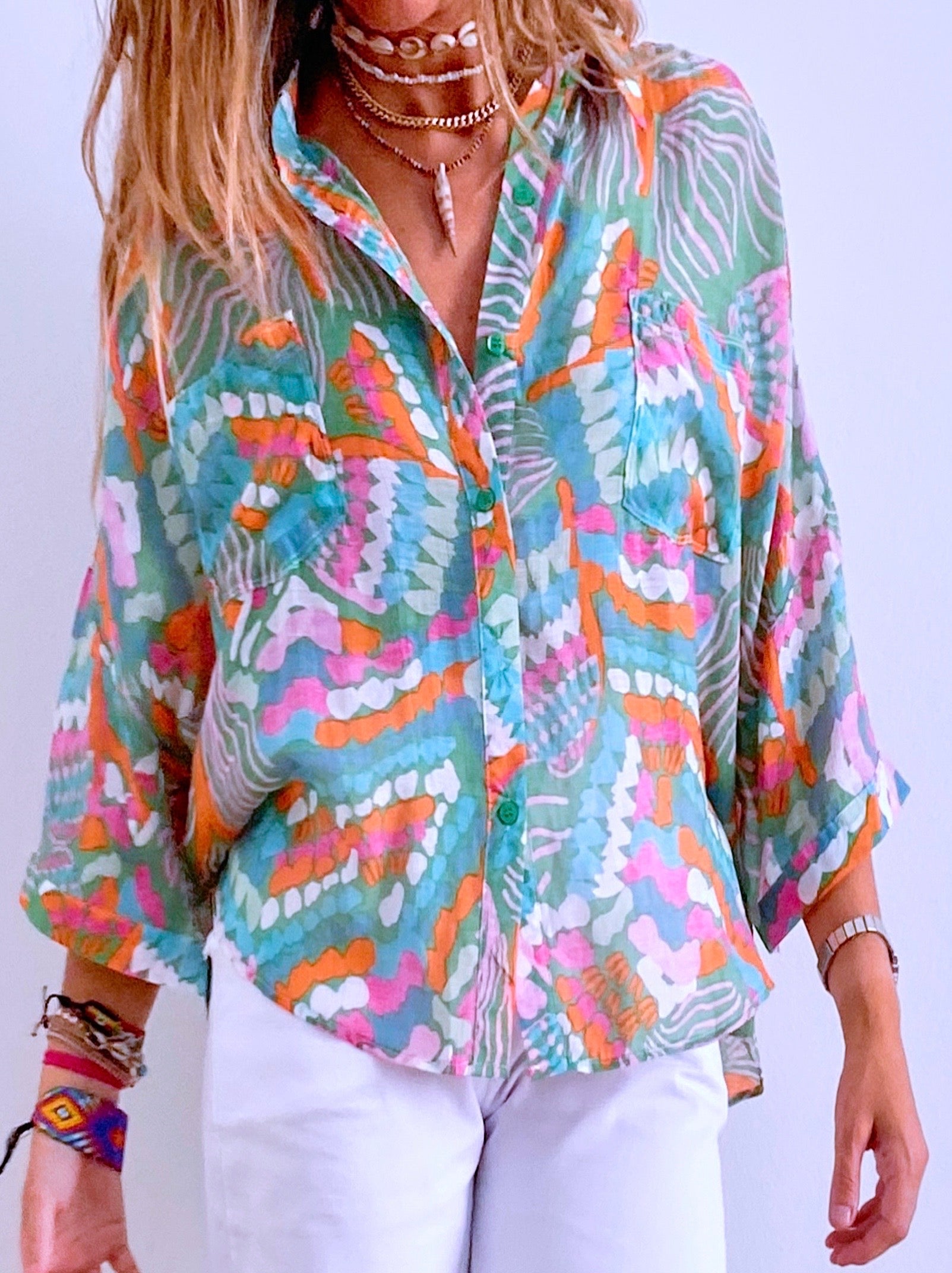 Effortlessly relaxed, our Camille shirt is the perfect blend of style and comfort with it’s soft and lightweight viscose fabric. The colors of the print, combined perfectly to provide a harmonious result, will bring a cheerful and fresh look to your summer outfits.