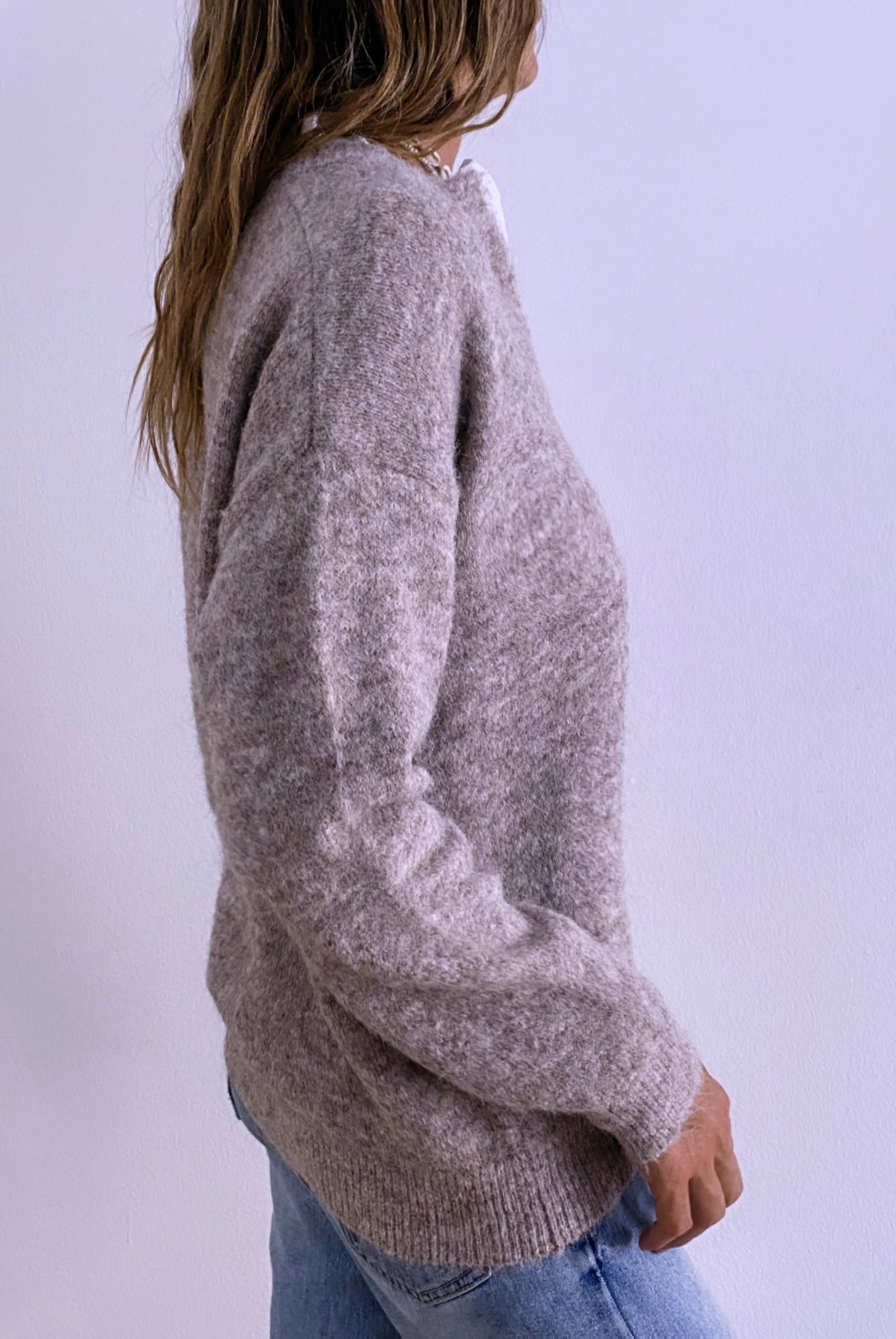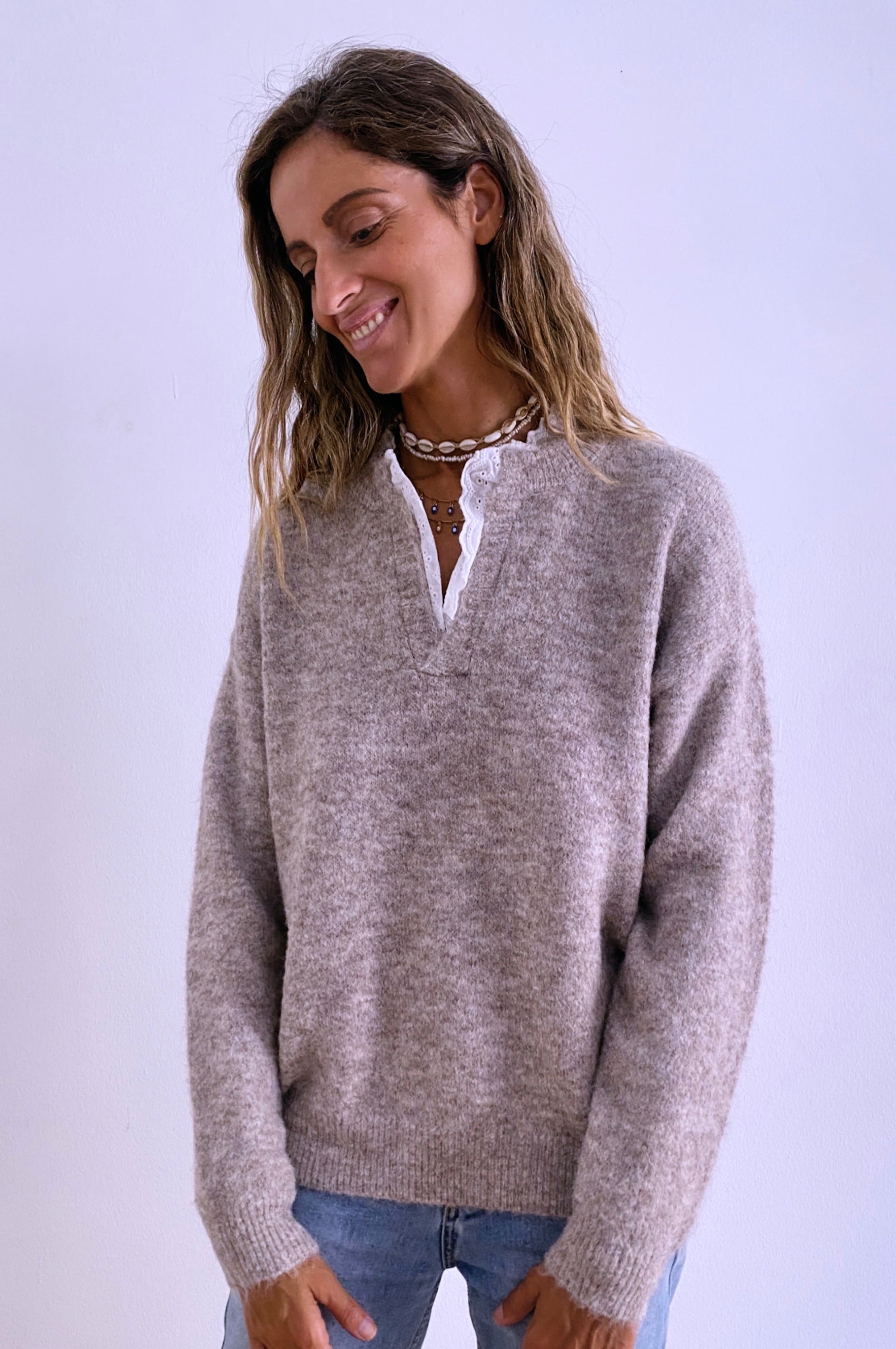 Our Chloé sweater was crafted with a fine knit fabric. The earthy, warm tones of the sweater blend beautifully with the delicate collar, creating a naïve yet romantic look. Soft and comfortable, it’s perfect for pairing with your favourite basic jeans for an effortlessly stylish and feminine outfit.