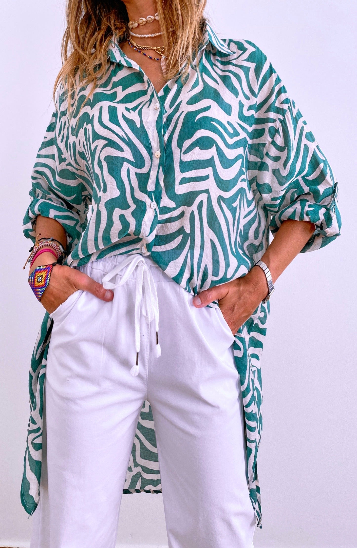 Comfortable and versatile. Our basic cotton Cindy washed trousers have a soft texture and a straight wide leg fit that makes them a great choice for everyday wear.