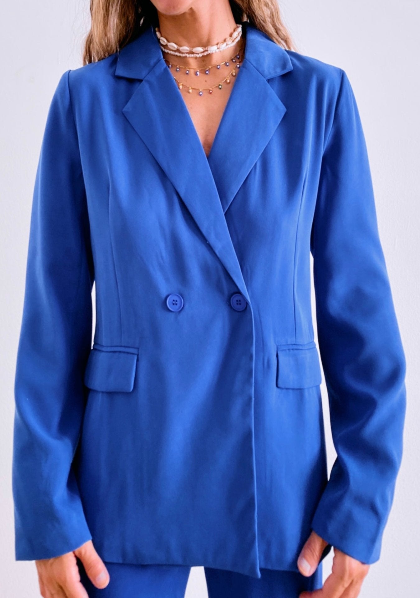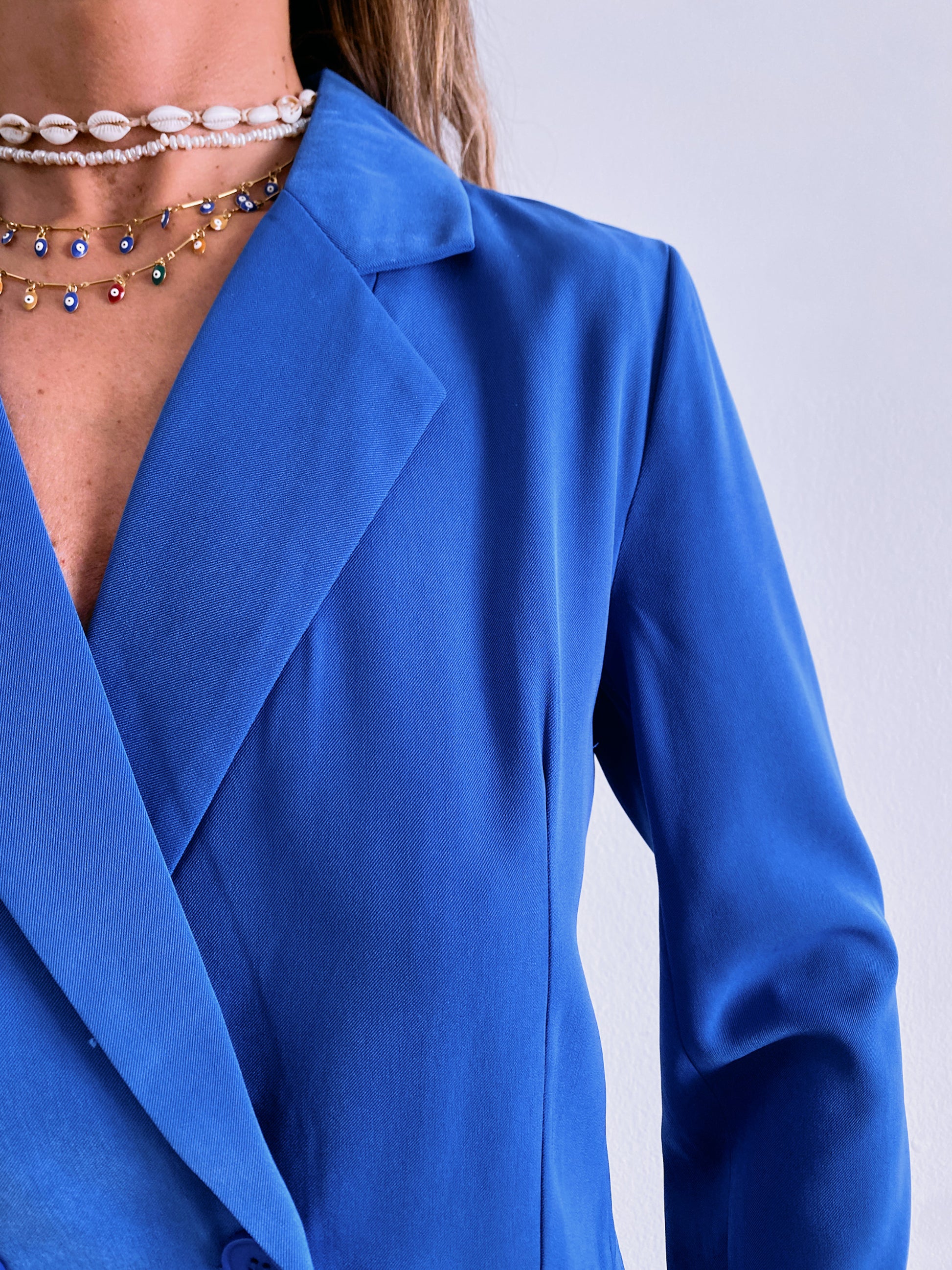 Our Claire blazer effortlessly blends timeless sophistication with a modern twist. Featuring clean lines and a striking blue hue, this blazer brings a fresh, casual vibe to the traditional blazer silhouette, making it easy to pair with everything from jeans to printed trousers. The high-quality fabric gives it a soft, comfortable touch, ensuring it feels as good as it looks. For those who love a total look, it can be styled with its matching trousers for a coordinated, fashion-forward set.
