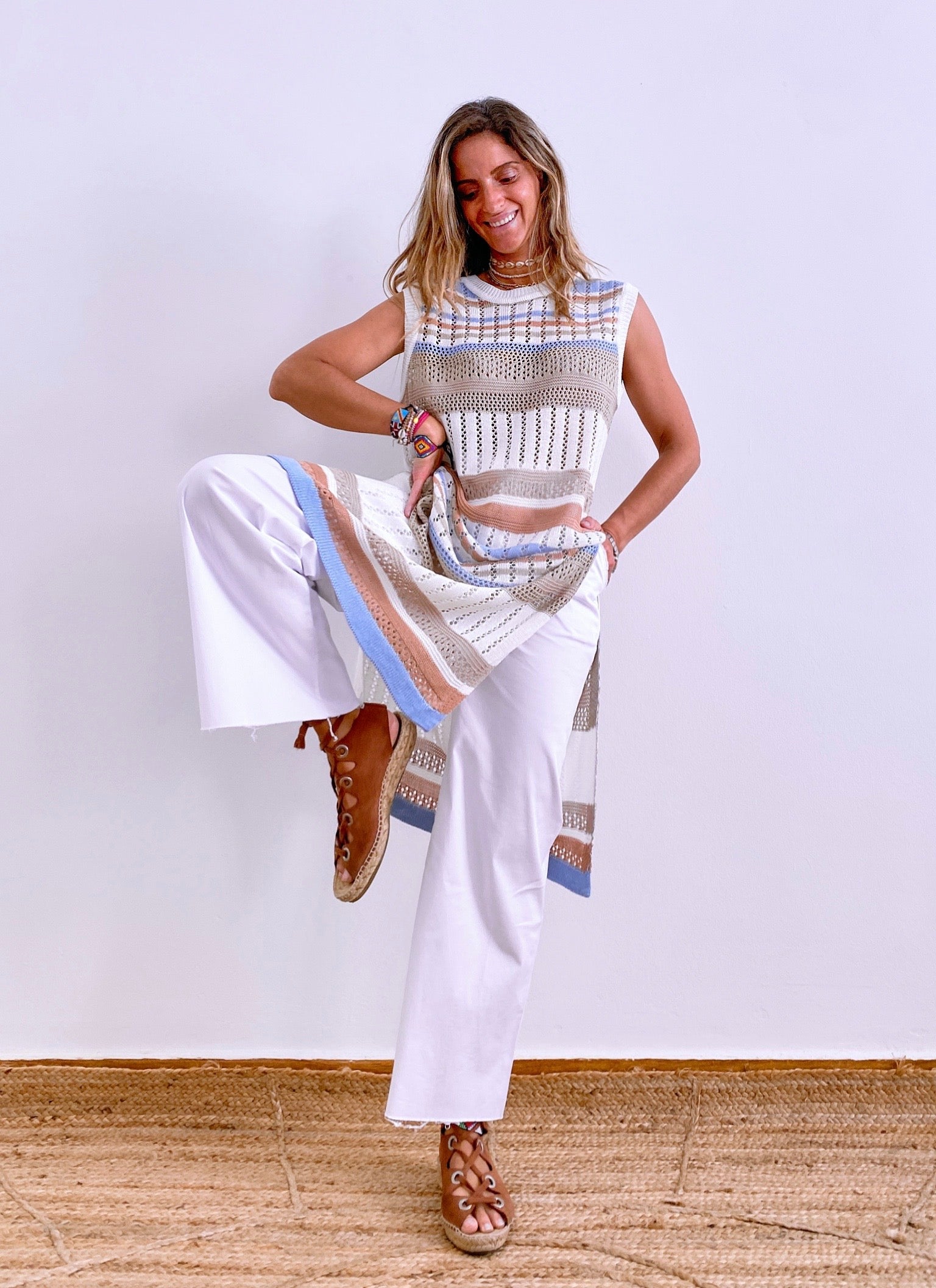 Open knit crochet dress / Striped dress / Side slits / Round neckline / Sleeveless / No lining / Midi dress / Loose fit