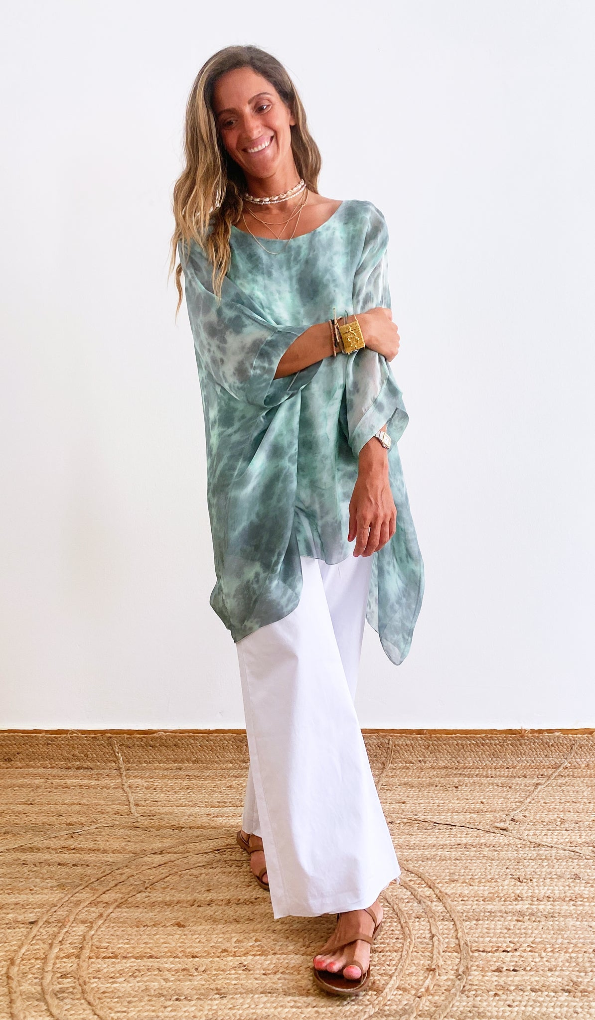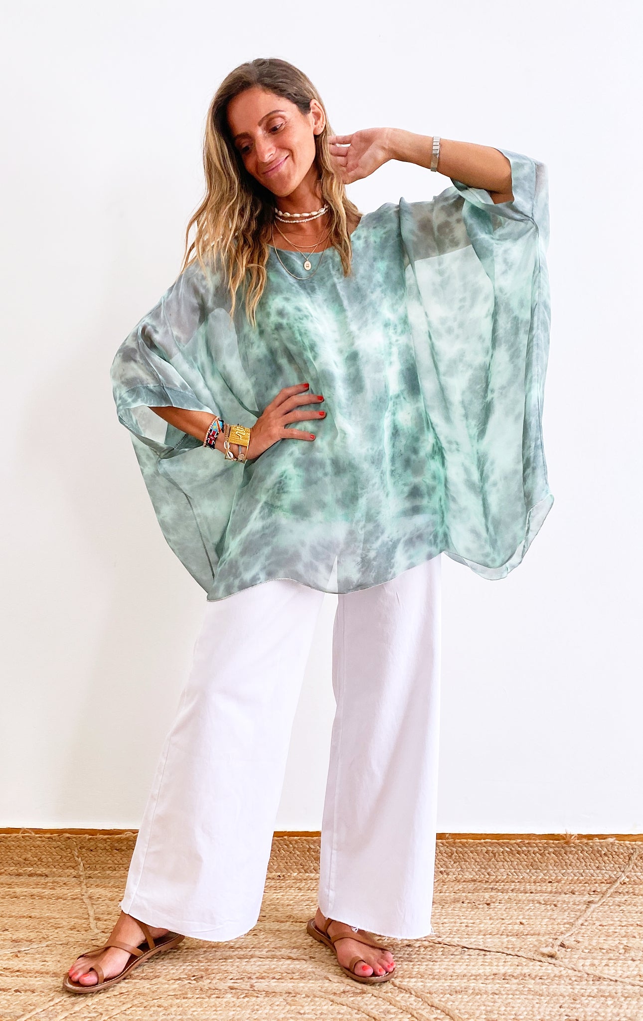 Elegantly crafted and specially dyed in Italy, Lara blouse is part of our SENSES limited edition Collection. Made with a blend of silk - viscose fabric and cut in a wide silhouette, this blouse brings a soft and romantic movement imitating the island summer breeze. The tie dye colour combination will bring a unique allure for a sophisticated summer look. You can style it either with trousers or for a more casual look with your favourite pair of shorts.
