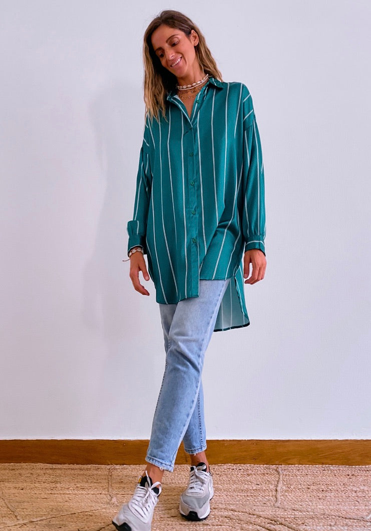 Classic stripes with a twist. Our London raso shirt, combines the elegance of the classic stripes, with the casualness of an oversized fit that gives a relaxed but elegant look. Made with an extra soft fabric for a better comfort.
