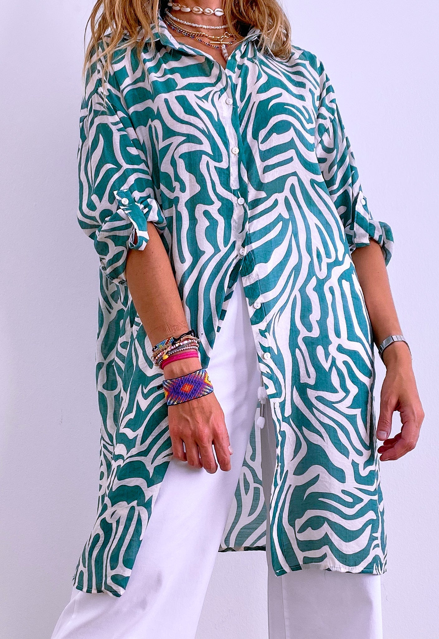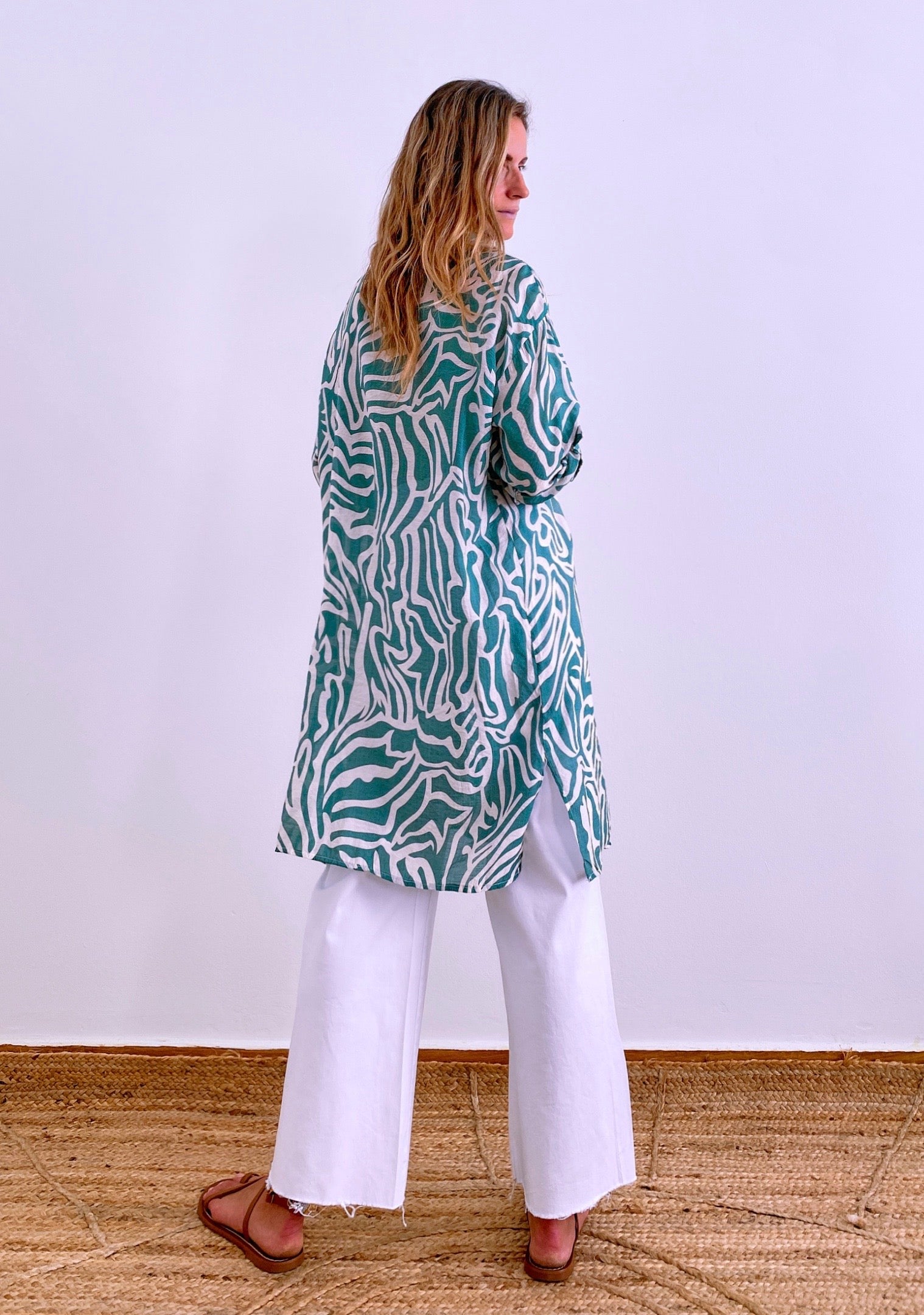When animal print meets elegance. Our Sara shirt along with its long length, side slits and mother of pearl buttons, brings the touch of exoticity needed for your summer days.