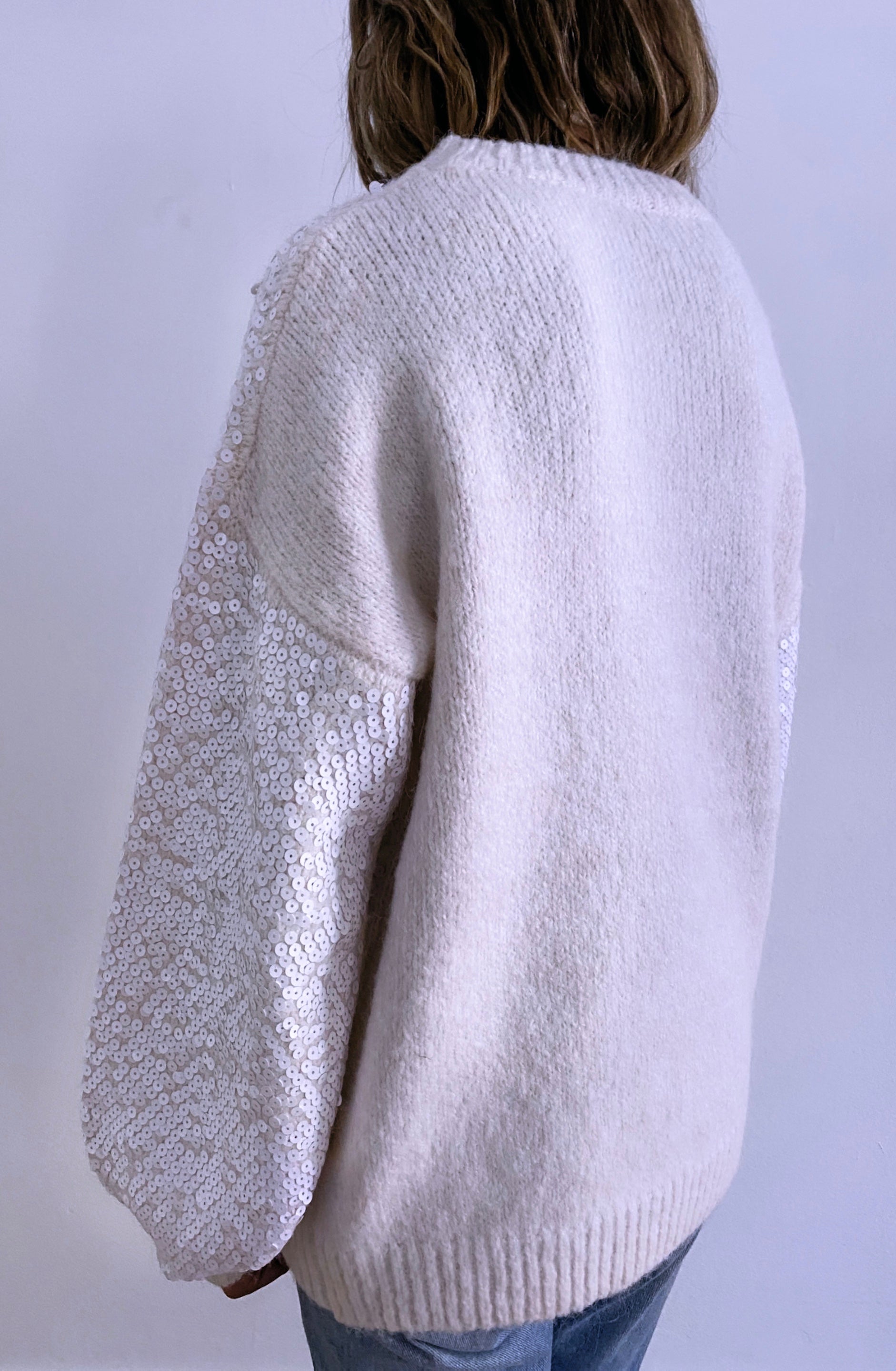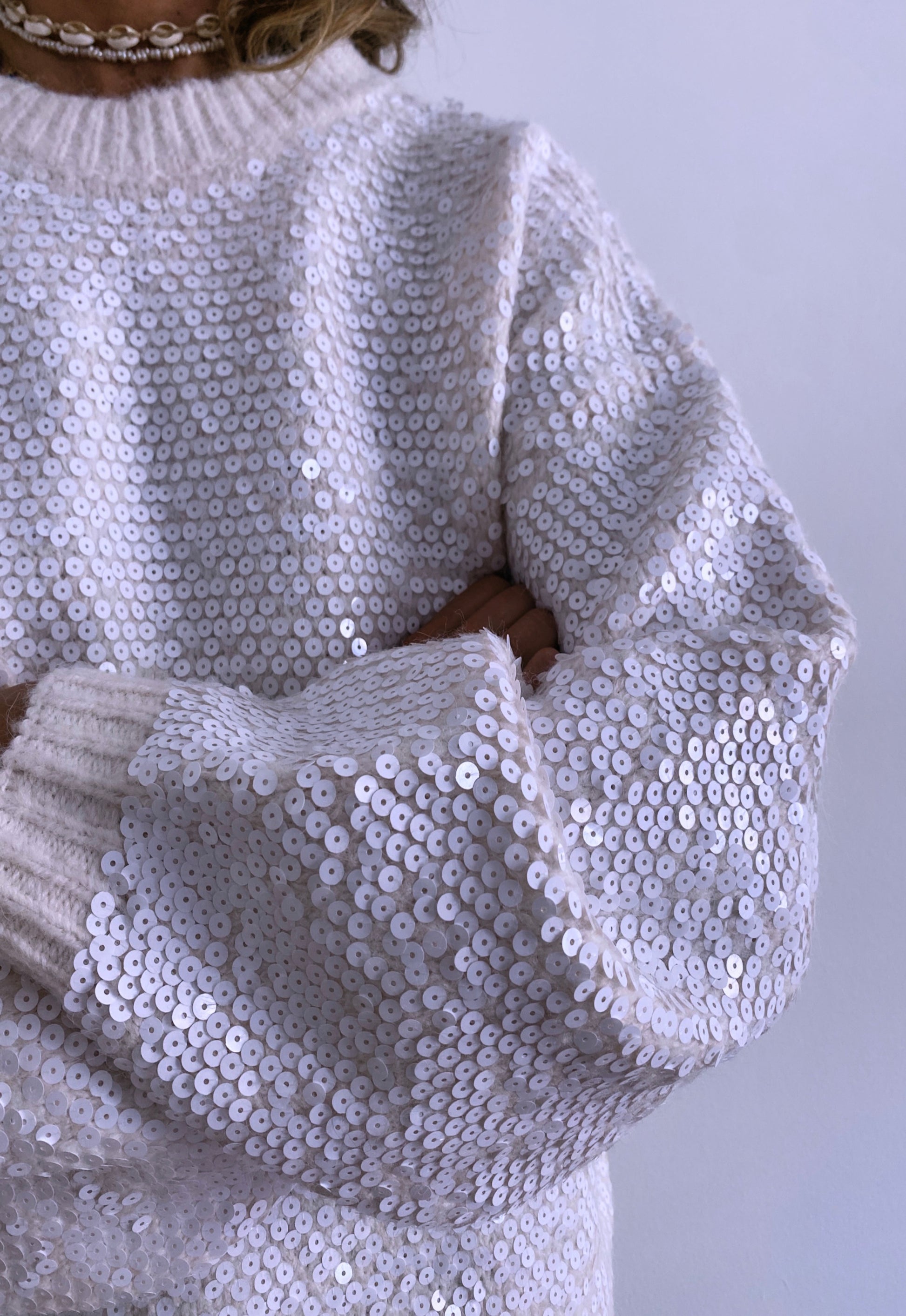 Our oversized Vivienne sweater is crafted from a soft, cozy fabric and embellished with tone-to-tone sequins, giving it a subtle yet glamorous shine. The sequin detailing catches the light in a refined way, instantly elevating any casual look. Perfect for the upcoming holiday season, it adds just the right amount of festive flair. Comfortable and chic, it's a standout piece for those who love to add a bit of sparkle to their wardrobe.